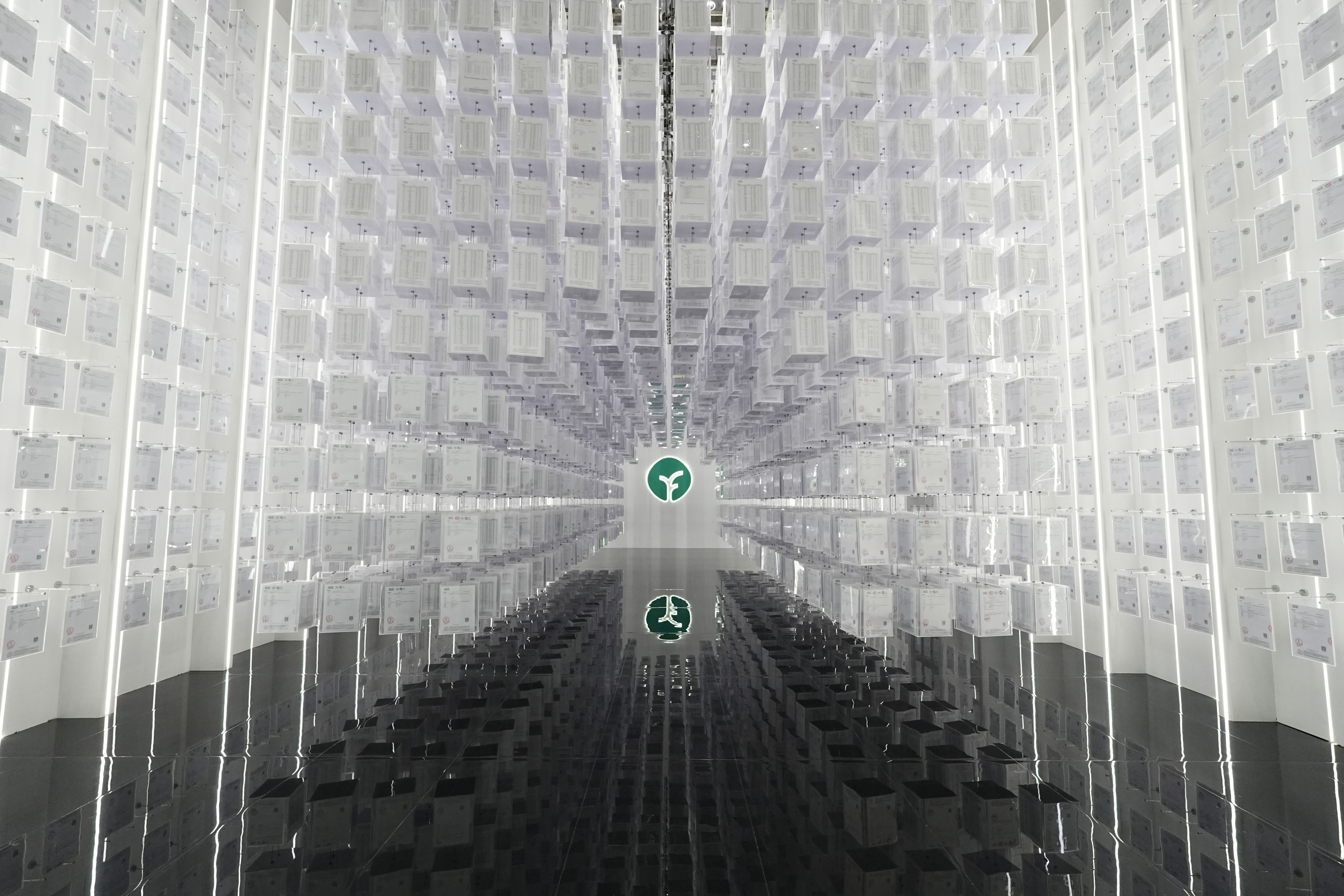 远方好物展厅中,平台产品检测报告墙